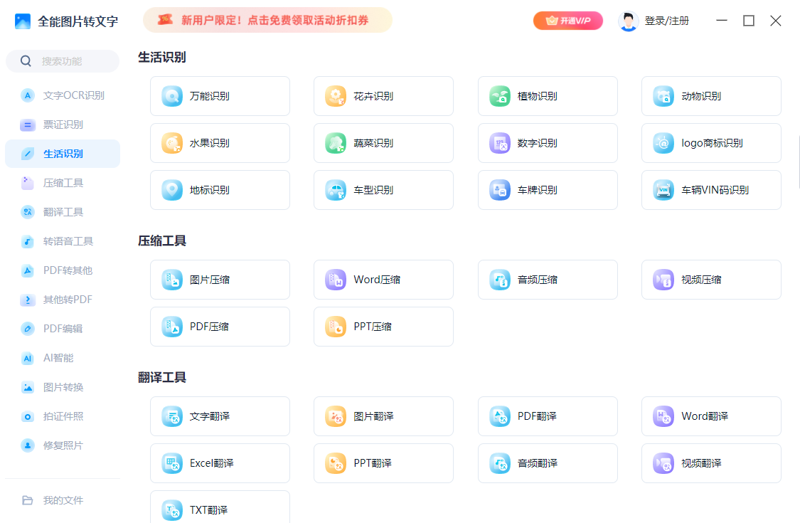 具备生活物品识别与智能压缩工具,支持动植物识别及图片、文档高效压缩。