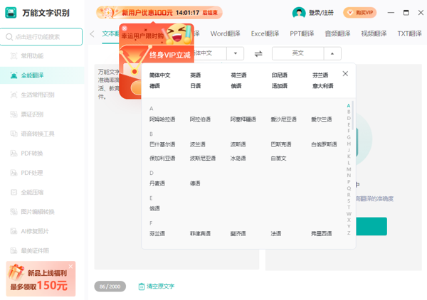 支持批量处理与多语言识别,可同时处理多个文件,并识别翻译十几种语言。