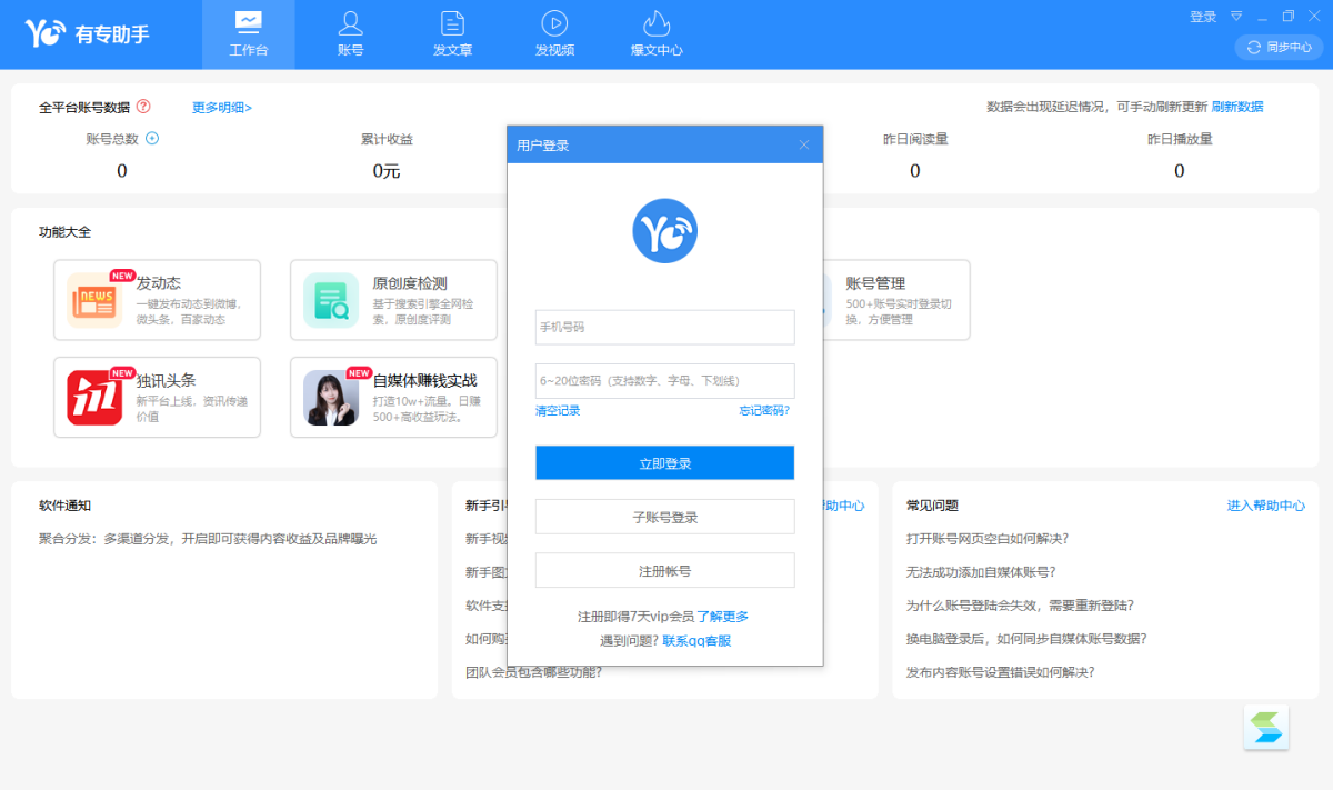 有专自媒体助手是一款好用的自媒体管理工具,有专自媒体助手电脑版之中用户可以使用该软件进行多平台账号绑定,然后等待好用户发布内容时候直接一键进行转发即可将自媒体的内容完成各个平台的发布。