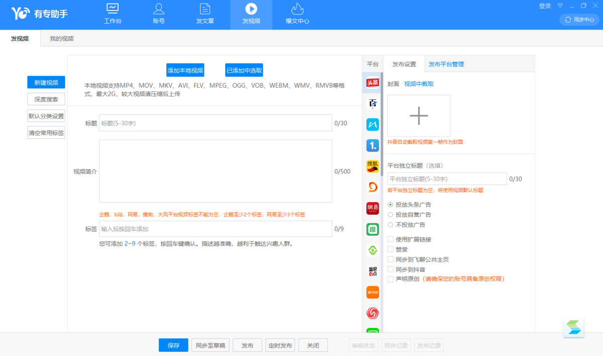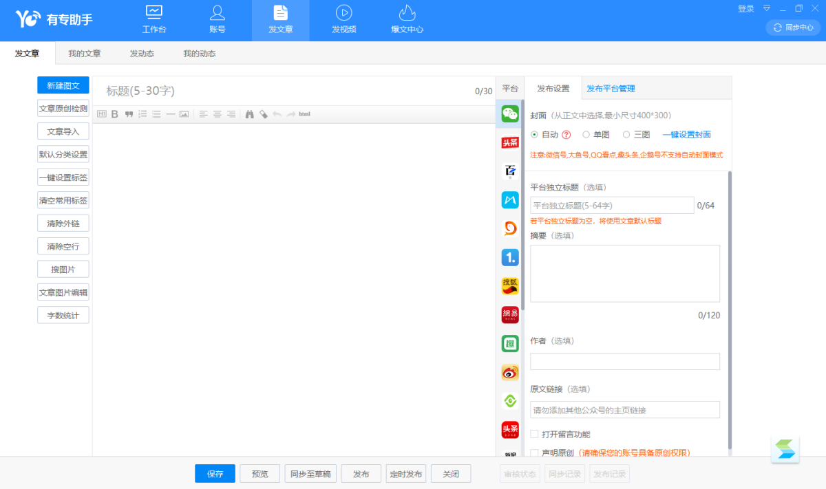 提供30+自媒体平台支持,覆盖主流内容平台,适配多种内容形式。