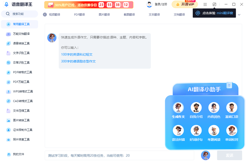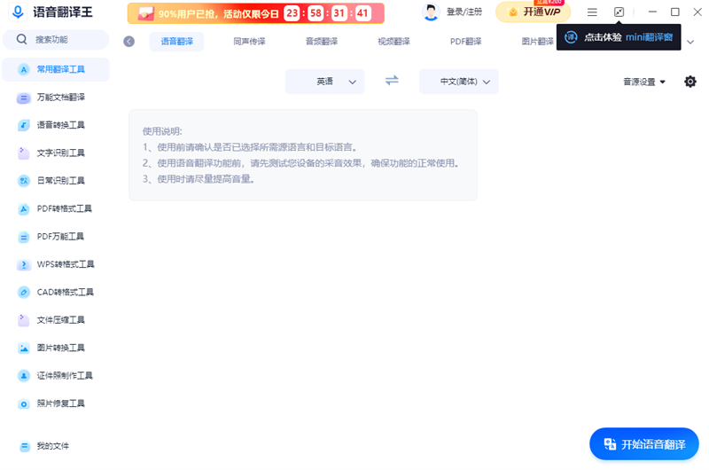 语音翻译王是一款好用的翻译工具,语音翻译王电脑版有着强大的翻译功能,可以直接翻译英语视频或者语音内容,方便用户快速提取翻译的文字,软件有着ocr识别,也可以直接提取文件之中的文字,方便用户快速翻译。