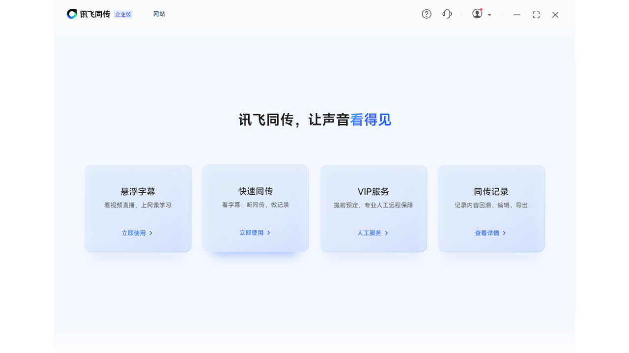 讯飞同传是科大讯飞出品的一款非常强大的软件,讯飞同传电脑版之中用户可以使用该软件来进行字幕翻译以及字幕显示,该软件可以直接使用实时语音翻译功能,然后以字幕的形式显示在桌面上,方便用户使用,是观看电影和外教课程人群优先选择。
