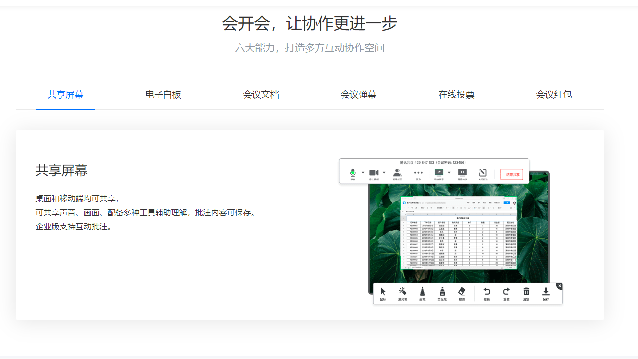 2、屏幕共享、互动白板、文档协作等丰富的协作工具,为会议中的沟通与合作提供了强大支持。