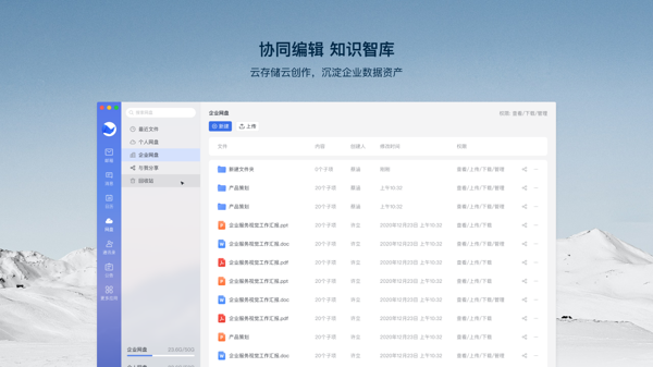 多端协同高效协作,在线文档支持多人实时编辑,历史版本可追溯,网盘支持多格式文件高速传输与权限管控,打造企业知识智库。