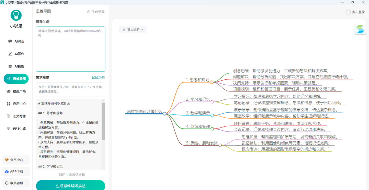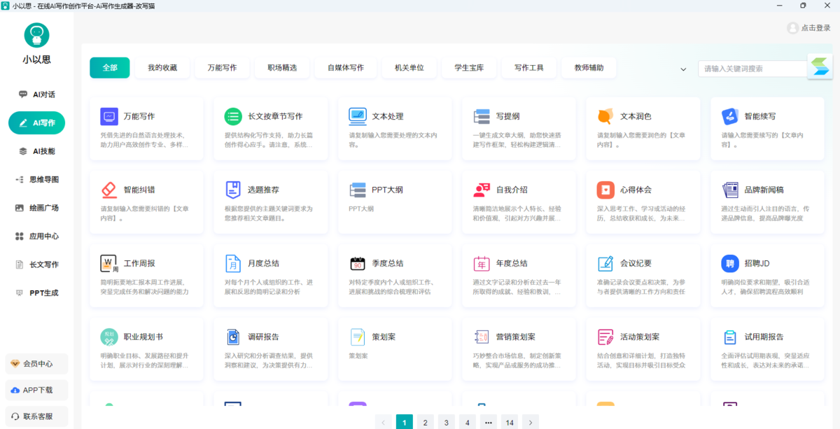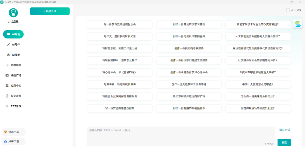 小以思AI是一款好用的AI工具,小以思AI电脑版支持AI写作、绘画以及AI聊天等等功能,帮助用户可以完成各种办公创作需求,让AI可以全面辅助用户进行营销方案、推广文案以及海报等方面的创作,从而快速而高效的完成工作任务。