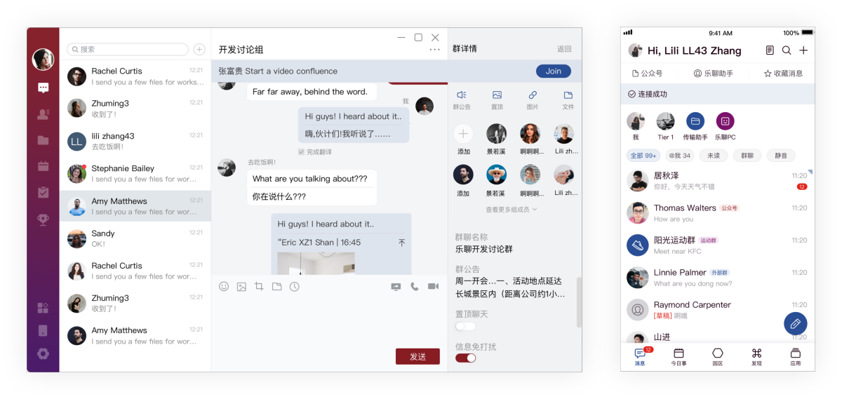 企业内即时通讯与通讯录整合,覆盖多种沟通场景。