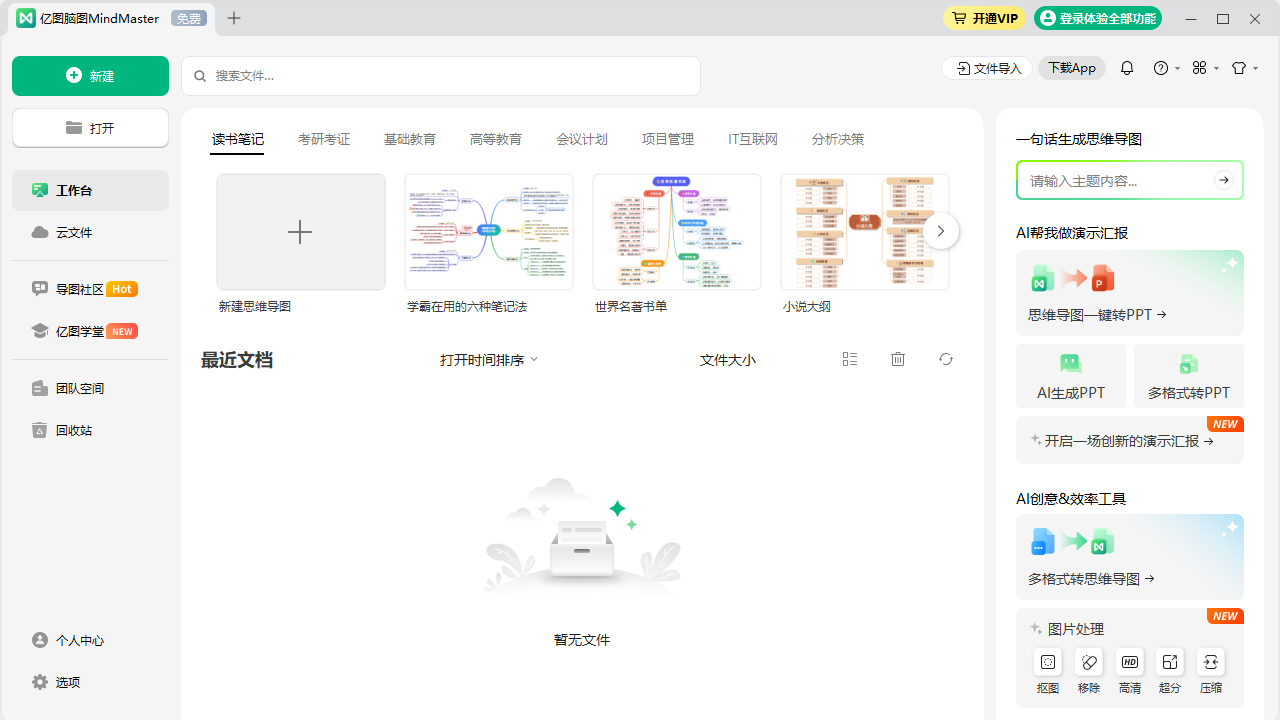 1、深度融合 AI 技术,为用户提供了丰富且高效的创作功能。支持一键生成思维导图,无论是用于学习笔记、项目规划还是创意构思,都能快速构建出结构清晰的思维导图。
