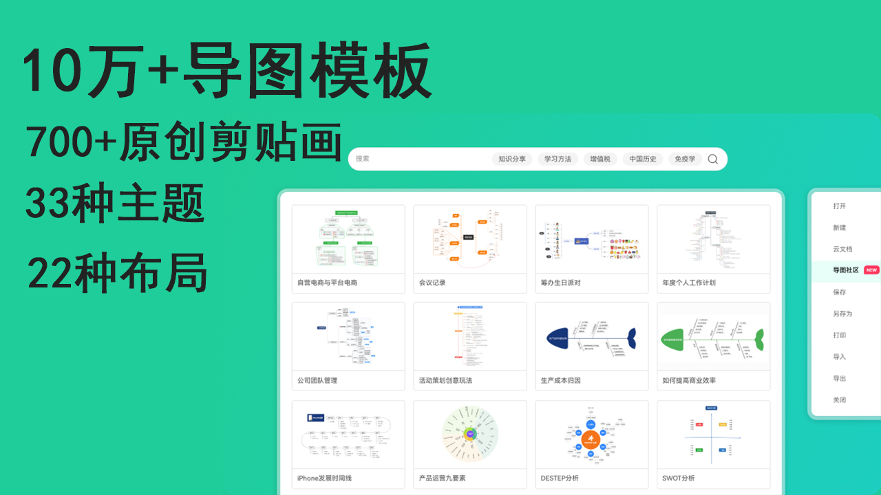 3、拥有庞大的模板库,提供超过 20 万 + 的导图模板,涵盖教育、职场、自我提升等多个领域。