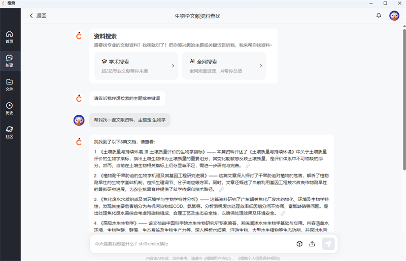 橙篇是一款强大的文献搜索工具,橙篇AI助手之中用户可以使用AI功能来进行文献检索,在软件之中帮助用户快速获取各种内容,并且该软件可以根据主题以及文献自动生成各种专业长文,让用户可以快速制作属于你的参考范文。