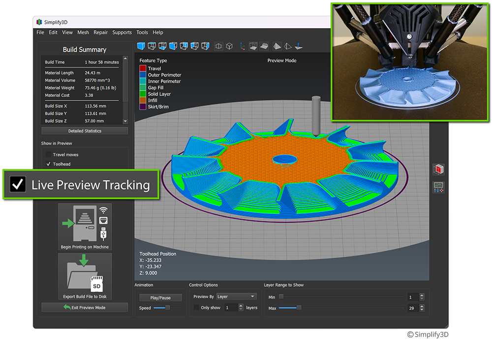 采用新一代切片算法使处理速度提升至以往版本的三倍,大幅缩短复杂模型和多实体零件的预处理时间。