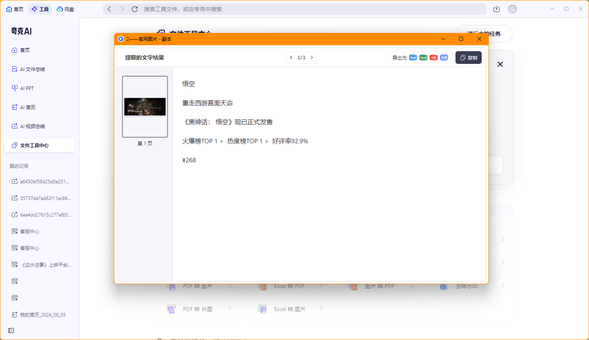 依托 AI 大模型实现高精准 OCR 文字识别,快速提取图片、扫描件中的文字内容,精准还原原文档排版,支持逐字 / 段落复制编辑,无需手动重新录入,信息处理效率翻倍。