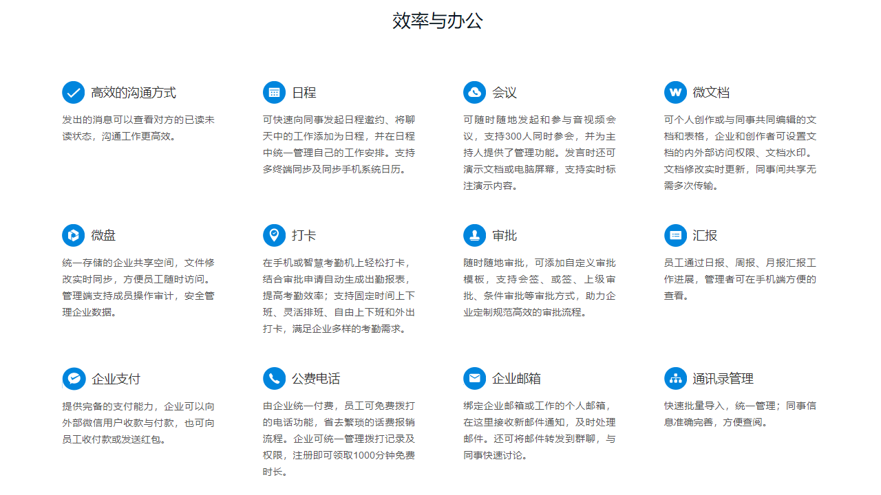 客户联系: 提供客户群、客户朋友圈等功能,帮助企业更好地连接和服务客户。