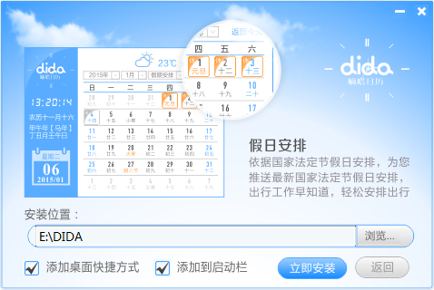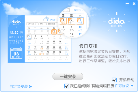 嘀嗒日历是一款好用的桌面日历工具,嘀嗒日历电脑版之中有着非常多的功能可以使用,软件支持查阅全面的工作时间和休息时间,并且记录下每天的工作时间以及假日安排,让用户可以更好的记录好生活。
