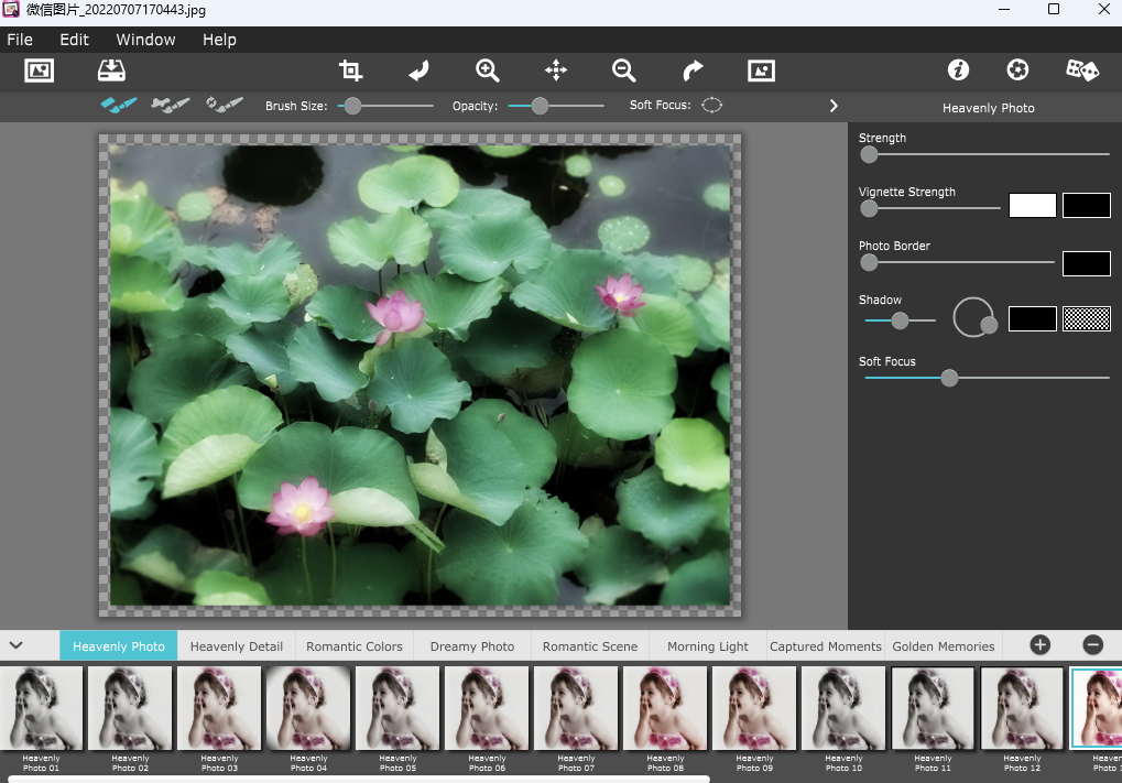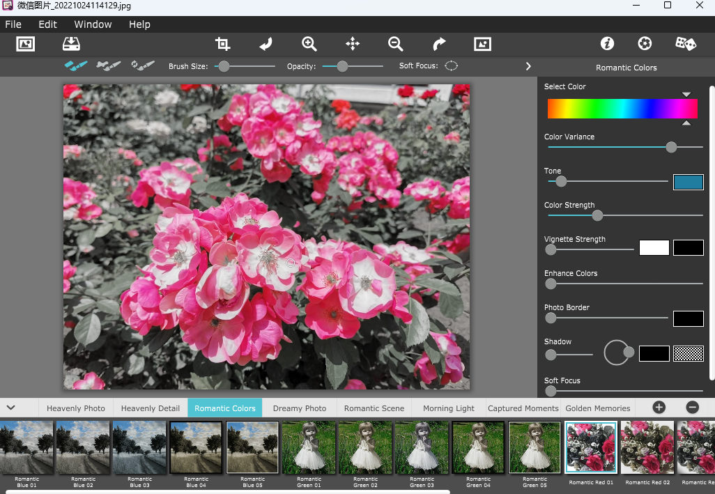 Romantic Photo是一款很好用的图片处理工具,Romantic Photo电脑版之中用户可以快速为照片制作各种图片效果,软件支持各种模版,可以对图片使用各种模板,让照片更加好用,软件支持编辑调整功能,让图片有着更好的效果。