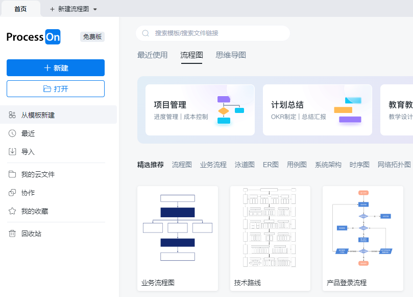 ProcessOn不仅支持多种图表类型,具备丰富的模板库和可定制的图形样式,还提供了在线实时协作和云端存储等功能。对于需要进行流程设计、思维导图、项目管理等任务的用户来说,是一个非常适合的选择。