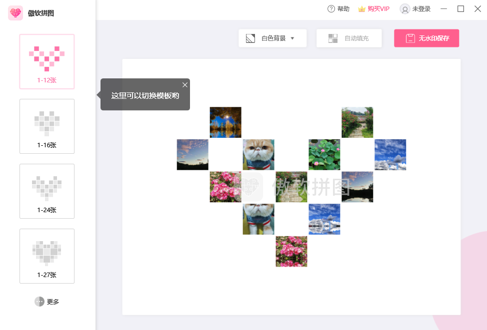 多种创意模板(如心形拼图、海报模板等),支持快速制作个性化设计。