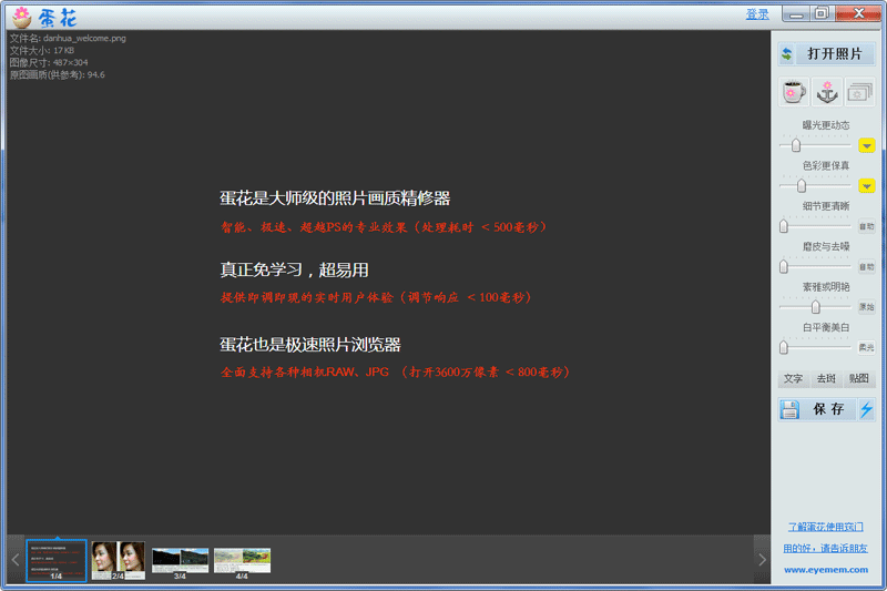 蛋花美照画质精修器是一款好用的画质修饰工具,蛋花美照画质精修器电脑版之中用户可以对软件进行图片画质修缮,软件专业性非常强,可以针对画面内容,进行进一步修缮,祛除画面瑕疵,让照片整体变得更加符合审美。