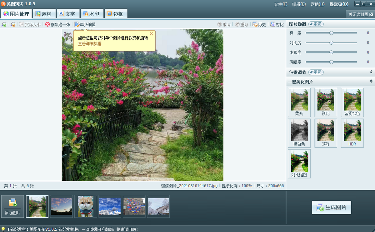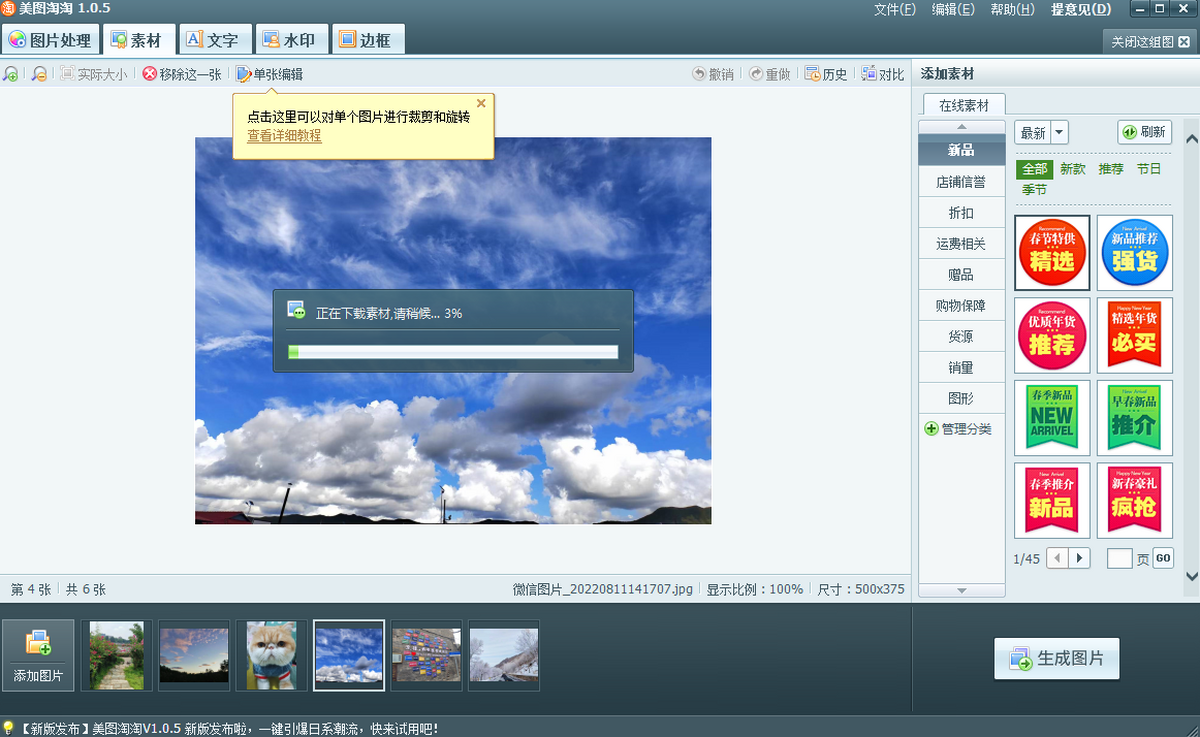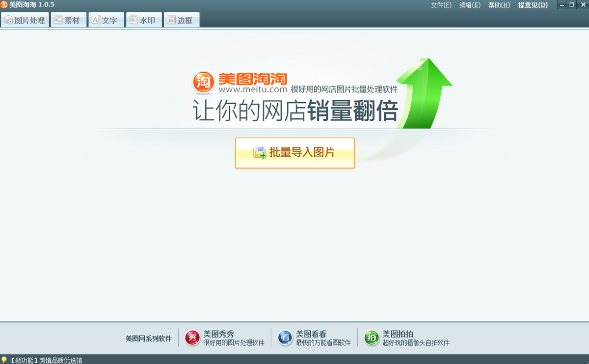 美图淘淘支持批量处理图片,用户可以一次性导入多张图片,同时进行裁剪、缩放、加水印、调整亮度、对比度等多种操作,大大提高了图片处理的效率,特别适合网店卖家处理大量商品图片。
