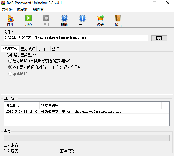软件实时显示破解进度,并兼容所有版本的RAR档案密码恢复。