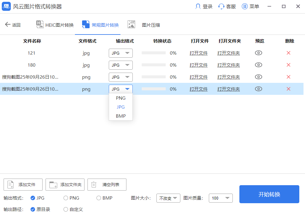 风云图片格式转换器支持通过拖放文件或文件夹的方式快速导入图片,特别适合需要处理大量图片的用户,可以直接导入一个文件夹内的所有图片文件,并对其进行格式转换操作,减少逐个添加图片的麻烦。