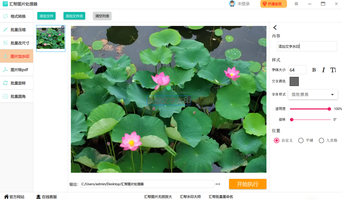 支持添加文字或图片水印,可自定义水印样式、位置和透明度等参数
