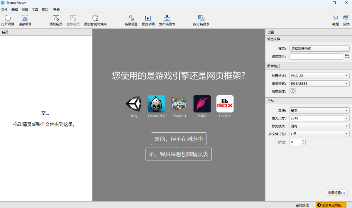 TexturePacker专注于游戏开发领域的专业精灵图打包。软件可以通过先进的算法,将大量零散的2D游戏素材高效地合并到一张大图中,并自动生成对应的坐标数据文件,从而极大优化游戏性能和开发 workflow。