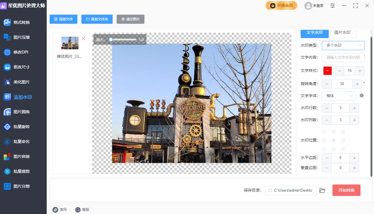 星优图片处理大师界面简洁直观,操作流程简单,即使是图片处理新手也能快速上手,轻松完成各种图片处理任务,软件还可以自己设置水印,帮助用户调整水印的位置、颜色等内容,帮助用户实现个性化的图片处理效果。