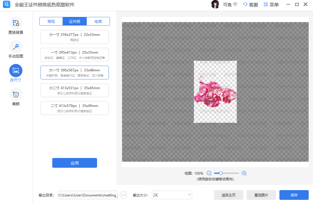提供透明、纯色及自定义背景替换选项,满足证件照制作与创意设计需求。