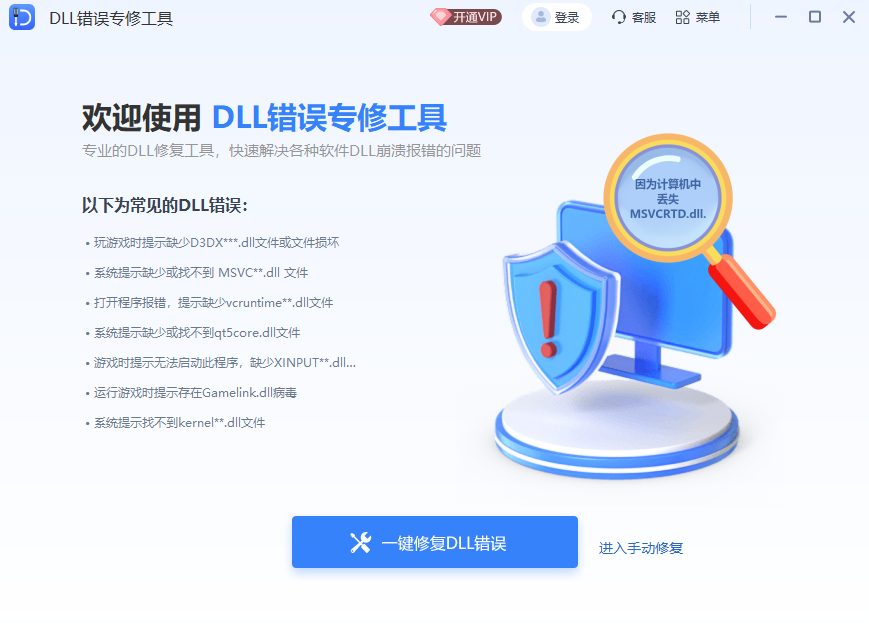 软件可以一键自动检测并修复Windows系统常见的DLL文件缺失或损坏问题。