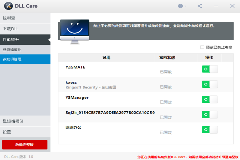 支持启动项管理与系统备份还原,优化开机速度并确保操作安全可逆。