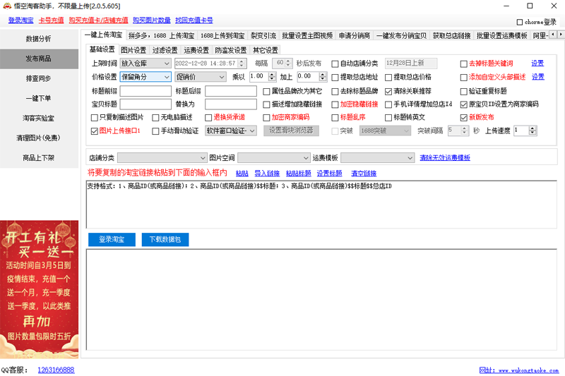 悟空淘客助手是一款好用的辅助工具,悟空淘客助手电脑版之中用户可以直接进行店铺上货下线管理,软件还可以自动排查异常情况,帮助用户快速找到异常点,还有原图查找功能,让用户不再烦恼商品图片问题。