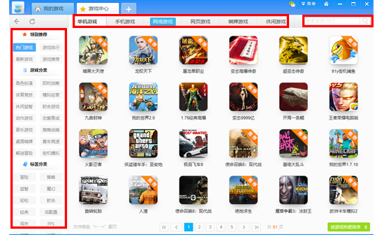 乐游游戏盒涵盖了单机游戏、手机游戏、网页游戏、休闲游戏等多种类型,包括动作、冒险、策略、竞技等各种风格,还有大量经典小游戏和热门大作,同时不定期更新推出独家发行的游戏,满足不同玩家的需求。
