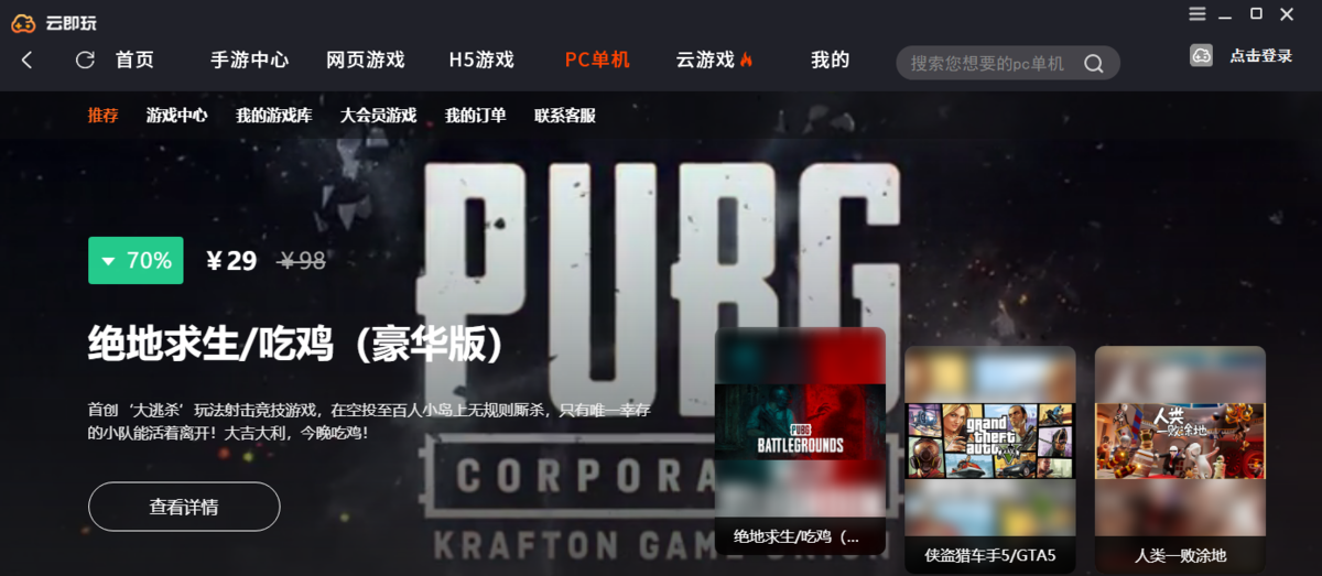 云即玩是一款非常好用的云游戏平台,云即玩电脑版之中用户可以在软件之中玩到近万种游戏,各种大型经典的游戏都可以直接游玩,无需担心本地电脑的配置,低配置的设备在平台之中也可以轻松挑战3A游戏,让用户可以痛快玩耍。