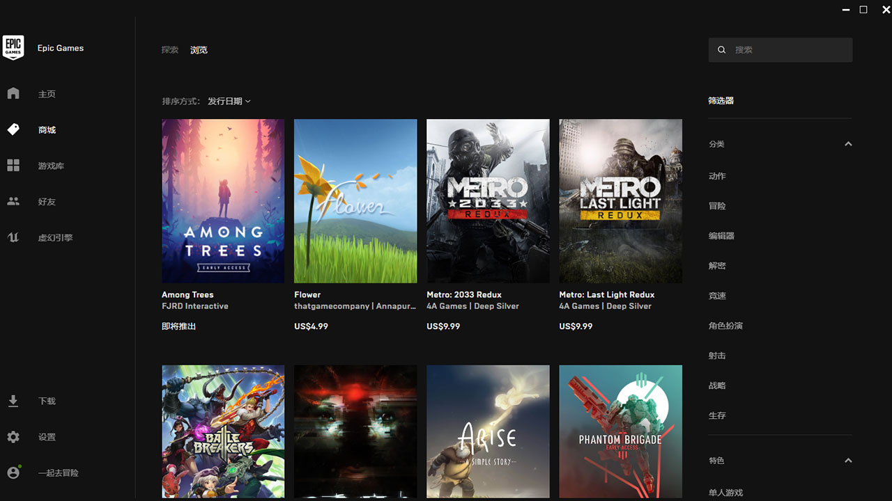 Epic Games正版是一款集游戏、应用、社区为一体的综合性游戏平台,Epic Games最新版之中有着多平台的游戏,在这里上架就可以直接购买和启动,内有优秀的好友系统帮助用户快速进行联机游戏,而且平台附带强大的虚幻5引擎带给用户完美的使用体验。