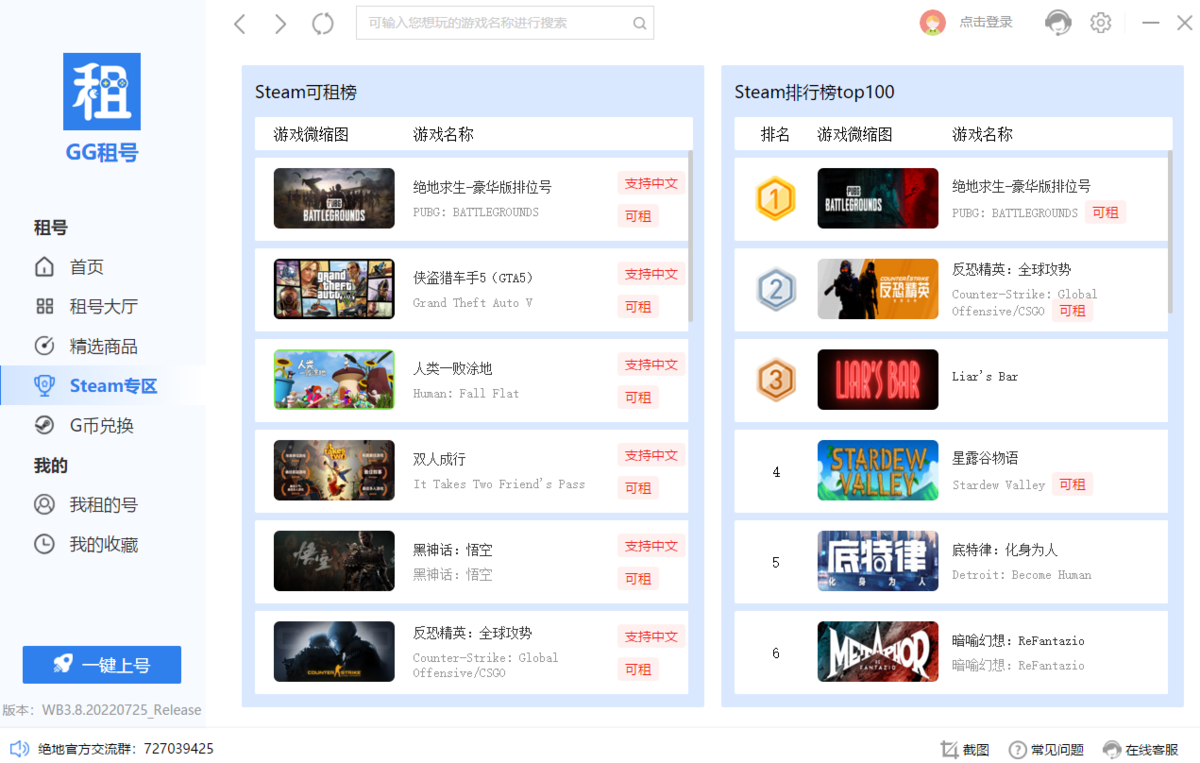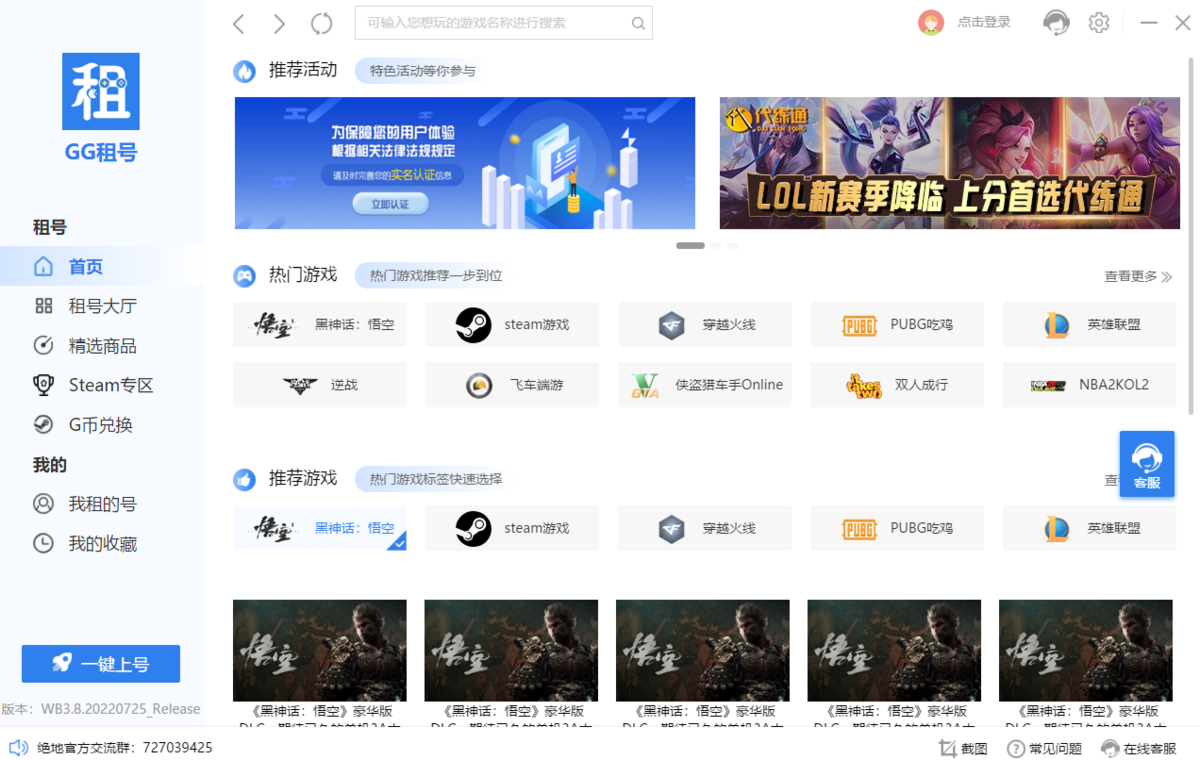 GG租号之中用户可以体验各种账号,并且该软件也具备着非常强大的上号能力,使用上号器就可以一键上号,无需购买之后再问客服,只需要使用上号器就可以一键上号,非常快速。