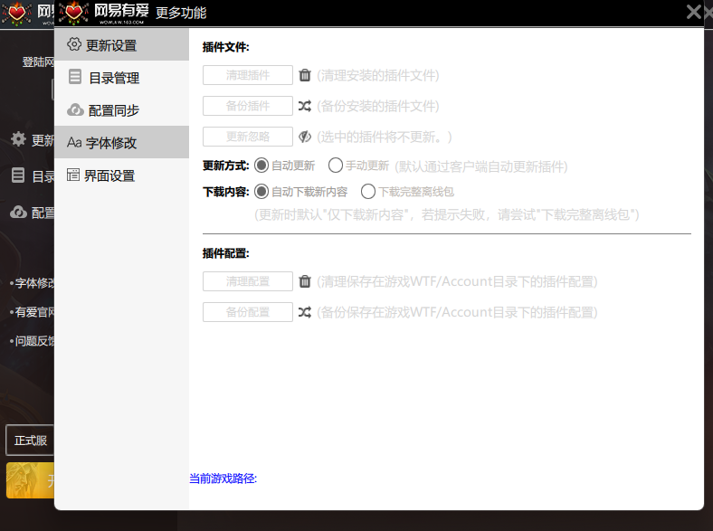 网易有爱是网易发行的一款魔兽世界游戏插件,网易有爱电脑版之中可以帮助用户完成各种游戏设置,让用户可以更好地操作游戏内容,以及帮助用户完成游戏界面设置,让游戏操作变得更适应玩家操作。