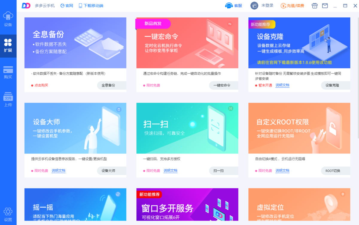 多多云手机是一款好用的云端虚拟游戏平台,多多云手机软件之中用户可以在电脑之中运行各种手机的软件以及游戏,在软件之中用户可以稳定的执行在线挂机功能,让用户可以随时进入游戏获得奖励,长时间在线,可以让用户获得更多的资源,也在某些游戏防止敌人进攻。