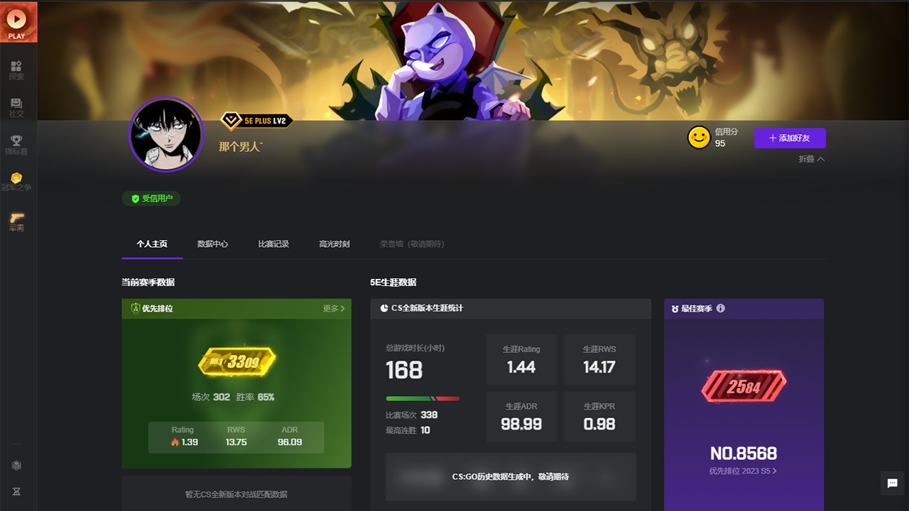 2、平台的天梯匹配算法采用了 ELO 算法结合 CSGO 特殊 RWS 算法,能够更准确地评估玩家的实力,打造一个公平体现玩家实力的天梯系统。
