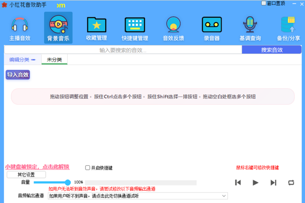 小红花直播音效助手是一款专为直播主播设计的音效辅助软件,小红花直播音效助手2026电脑版内置了多种音效,主播可以根据直播内容选择适合的音效,能够在直播过程中实时触发音效,无需中断讲解或表演,使直播更加生动有趣,增强观众的参与感。