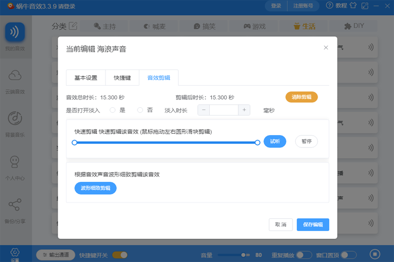 系统允许用户对所有音效进行剪辑,裁剪音效的时长或修改内容,满足个性化需求。