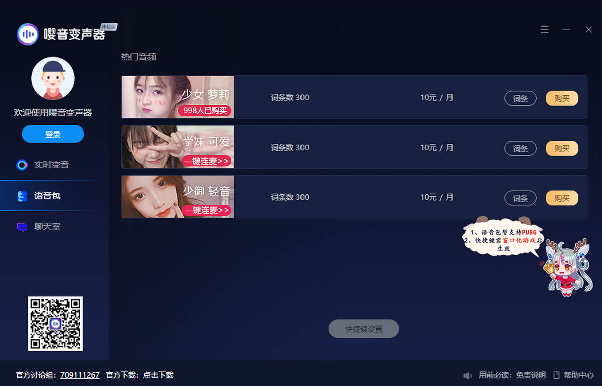 嘤音变声器是一款非常好用的变声器,嘤音变声器电脑版之中用户可以在软件之中设置自己需要输出的声音,在软件之中用户可以进行各种返音,防止软件推出不自知,并且变声操作非常简单,选择好声音即可,多种声线都可轻松使用。