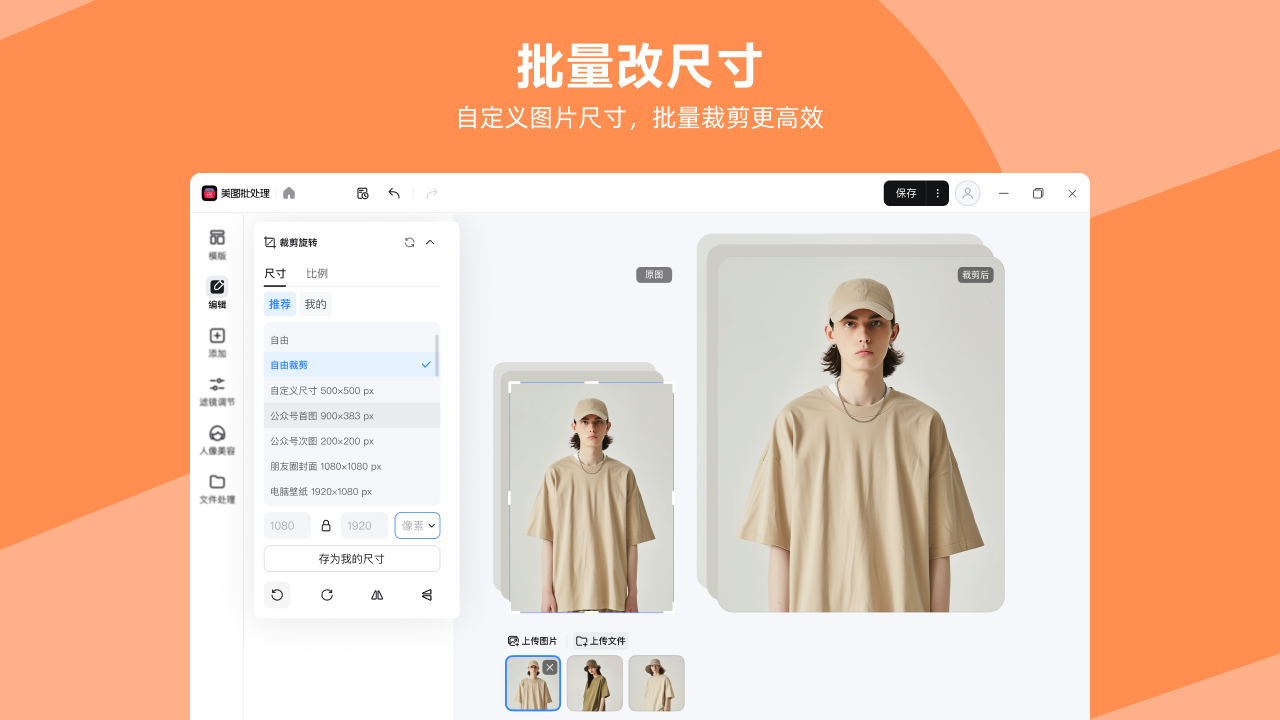 3、无论是电商平台的图片要求,还是社交媒体的尺寸需求,美图批处理都能快速调整。