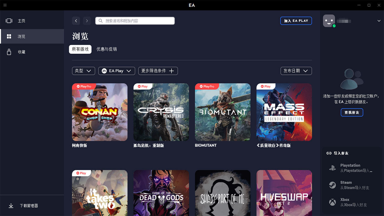 1、EA 游戏平台汇聚了 EA 旗下的全系列游戏,涵盖了单机游戏、多人在线游戏以及云游戏等多种类型。