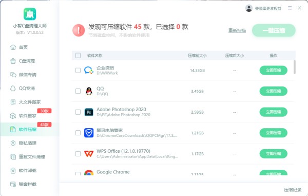 1、大部分功能均支持一键操作,极大地简化了用户的使用流程。即使是电脑操作经验不足的新手用户,也能轻松上手,快速完成系统清理和优化任务。