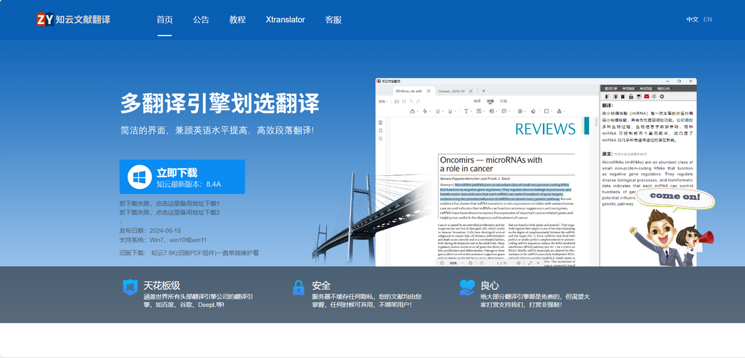 1、支持极速翻译,对于英文文献能够实现秒级翻译,极大地提高了科研与学术工作的效率,节省了大量时间成本。