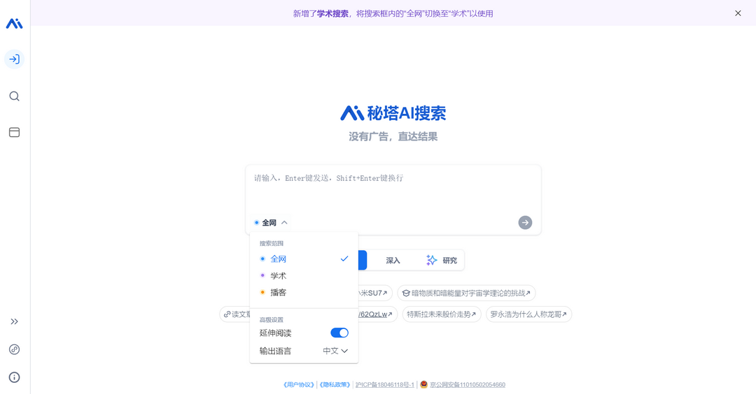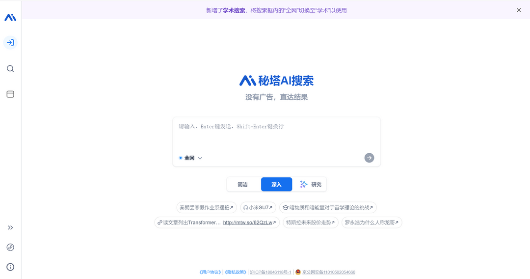 秘塔AI搜索免费版是由上海秘塔网络科技有限公司开发的一款智能搜索引擎工具,秘塔AI搜索最新版之中接入了自研ai大模型MetaLLM,该大模型整合了全网的学术论文以及相关的视频、图文,专注于办公、学习领域。