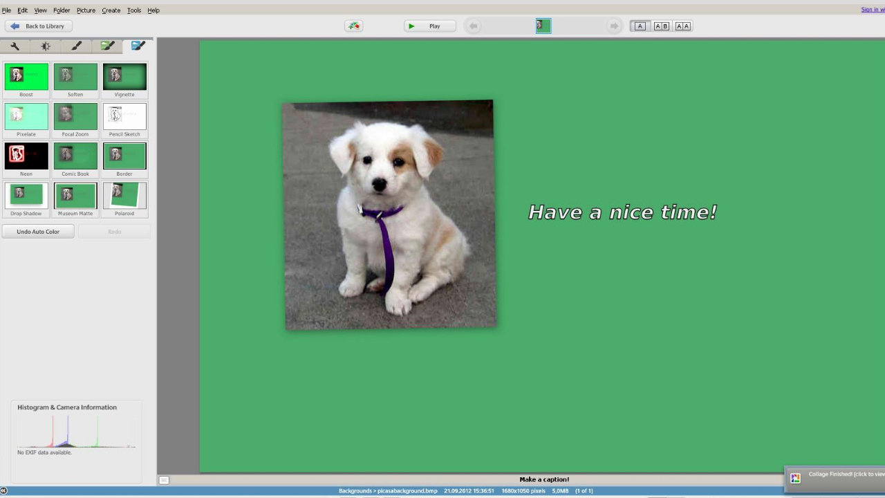 4、为满足用户的创意需求,Picasa 支持制作幻灯片、图片拼贴、海报等创意项目。同时,软件内置多种特效和滤镜,用户只需简单操作,即可为图片添加风格各异的效果,轻松创作出具有独特个性的图片作品。