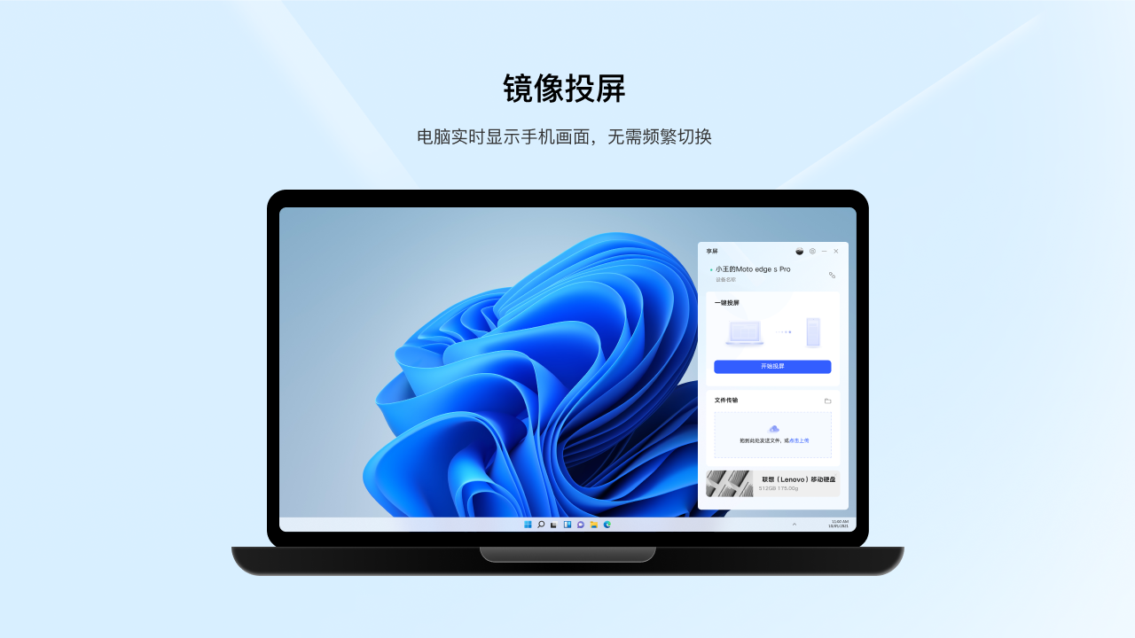 可将手机屏幕实时镜像至电脑,支持看直播、刷短视频、播放 PPT 等,适配横竖屏切换,电脑端无需额外下载应用。