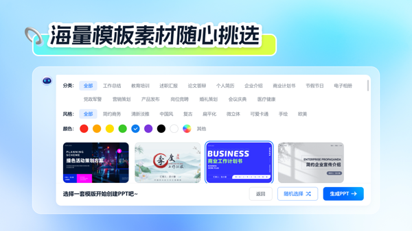 模板丰富:提供超过 10 万 + 的定制级模板和素材,涵盖二十几个不同场景风格,包括商务、教育、销售、创意等多个领域,用户可轻松找到符合需求的模板,打造专业且个性化的 PPT。