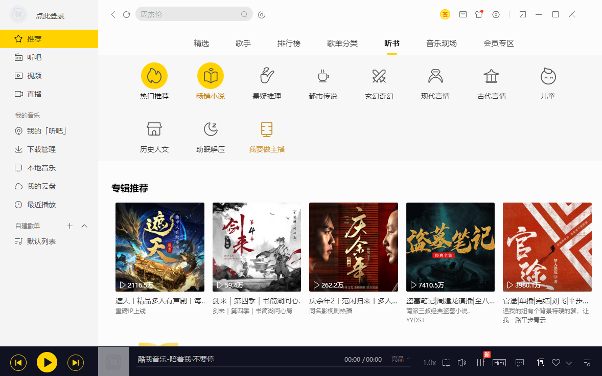 酷我听书是一款非常好用的听书软件,酷我听书电脑版之中有着非常多的资源可以听取,在用户可以无聊的时候可以直接打开该应用直接听,并且可以伴随着各种音乐一起进行播放,听起来非常带感,值得体验。